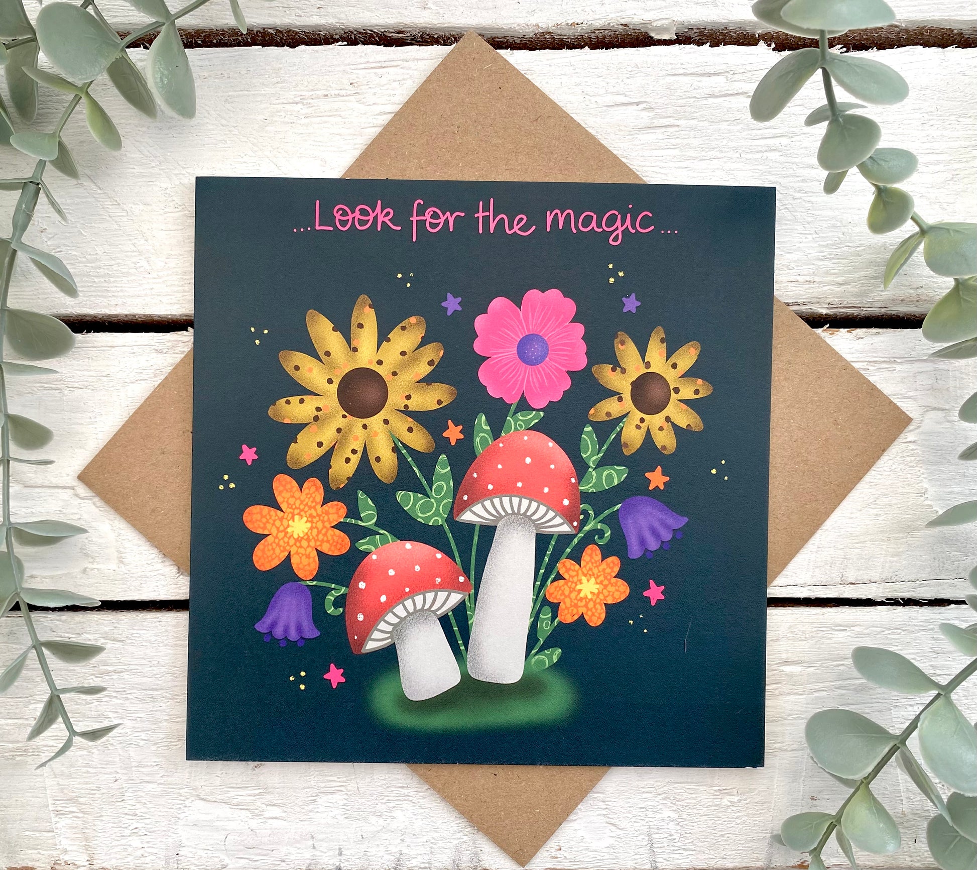 Blank inside. Printed in the UK on sustainably-sourced card with a recycled kraft envelope.